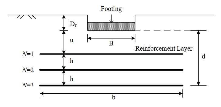 - u = chiều sâu chôn lớp geogrid trên cùng.